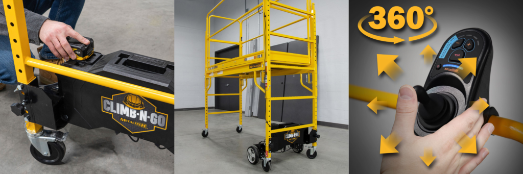 Climb-N-Go® is a motorized system developed by Metaltech for Baker type scaffolding that improves worker efficiency by allowing them to move the scaffold they’re on without ever getting off it! Pro Tool & Supply is proud to provide contractors and construction companies throughout New England with Climb-N-Go portable scaffolding systems that are available to buy and rent! Learn more about Climb-N-Go by reading below, or contact our team at Pro Tool & Supply today for a free quote! Call us at (857) 706-2980 or fill out the quote request form on our website, and we’ll get back to you as soon as possible!
