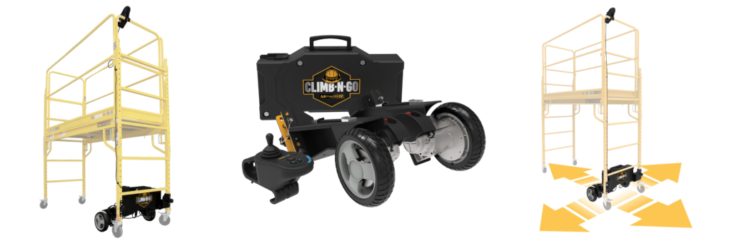 Climb-N-Go® is a motorized system developed by Metaltech for Baker type scaffolding that improves worker efficiency by allowing them to move the scaffold they’re on without ever getting off it! Pro Tool & Supply is proud to provide contractors and construction companies throughout New England with Climb-N-Go portable scaffolding systems that are available to buy and rent! Learn more about Climb-N-Go by reading below, or contact our team at Pro Tool & Supply today for a free quote! Call us at (857) 706-2980 or fill out the quote request form on our website, and we’ll get back to you as soon as possible!